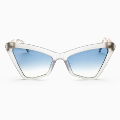 Available in three variants: pink crystal frame with light gray lenses, crystal frame with cobalt lenses and tortoiseshell frame with shaded green lenses.